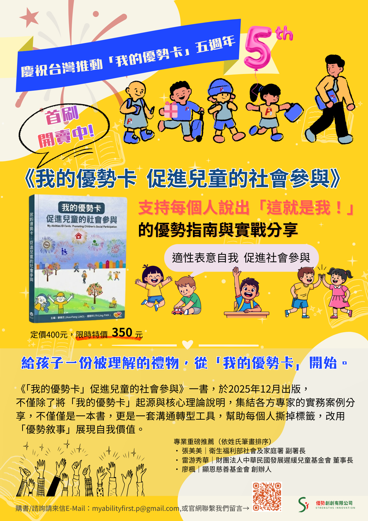 本書除了詳述「我的優勢卡」的起源與核心理論,更集結了各方專家分享的實務案例,透過這些精采故事將「我的優勢卡」在不同生命情境中的應用具體化。帶領讀者看見如何從「發現優勢」到「落實支持」,讓這份工具真正成為改變生命的契機,並落實及促進兒童的社會參與。